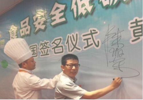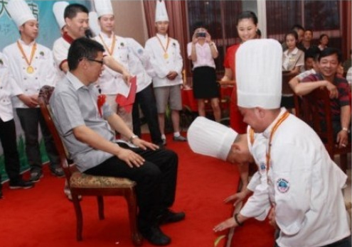7月10號晚,“當(dāng)代四大名廚”陳緒榮在湖北黃石陽新舉行了盛大的收徒儀式!收徒儀式由大冶市烹飪餐飲業(yè)協(xié)會常務(wù)副會長兼秘書長羅文主持,黃石市烹飪餐飲業(yè)協(xié)會和大冶市烹飪餐飲業(yè)協(xié)會的眾多嘉賓到場祝賀,北京、江西和武漢等地的弟子專程前來賀喜。首先,我號召同行承諾推廣綠色食材和綠色烹飪的“生態(tài)宴”,并在“食品安全低碳環(huán)保‘生態(tài)宴’”簽名墻上簽字,大家踴躍寫上自己的名字;隨后,收徒儀式以傳統(tǒng)的拜師形式舉行,按跪拜、敬茶、頒發(fā)證書和合影等程序進(jìn)行;最后,嘉賓和弟子登臺發(fā)表致辭。
