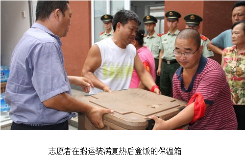 7月28日,兩輛車身懸掛著“湘鄂情和北京人民心連心”橫幅的冷餐車,載著2100盒復(fù)熱后的冷鏈盒飯和礦泉水,從青龍湖鎮(zhèn)駛出,一輛開往房山區(qū)青龍湖鎮(zhèn)北車營(yíng)村災(zāi)民臨時(shí)安置點(diǎn),另一輛開往青龍湖鎮(zhèn)果各莊村和大馬村,把可口的熱飯熱菜送到“7.21”特大暴雨受災(zāi)災(zāi)民面前。這三個(gè)村子的上千災(zāi)民終于結(jié)束了“一天兩頓方便面”的生活,災(zāi)后第一次吃上了由北京湘鄂情股份有限公司提供的可口的免費(fèi)熱飯熱菜。