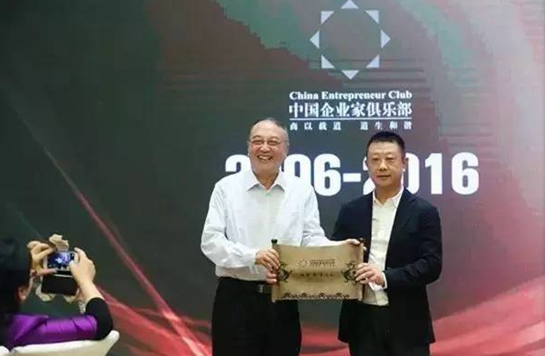 中國企業家俱樂部主席柳傳志為海底撈張勇授牌