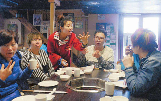 張玉壽說,2015年籌備餐廳時(shí),他就和員工一起到玉龍縣職高進(jìn)行了兩個(gè)月的培訓(xùn),從那時(shí)開始接觸手語,后來通過看書、看視頻自學(xué)及與員工的交流,如今,他與員工交流時(shí)可做到80%用手語。“只有融入他們,才能更好地認(rèn)識(shí)他們。”