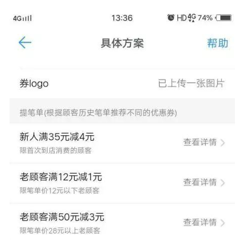 對新顧客,會按照餐廳的人均消費,以及餐廳的預算,進行滿減,對老顧客則會根據(jù)他的消費記錄,給他發(fā)放合適的代金券,不會因為代金券滿減的門檻太高,或優(yōu)惠力度太小,而讓代金券成為廢紙、形成營銷誤傷,還能根據(jù)情況給出拉復購的方案。